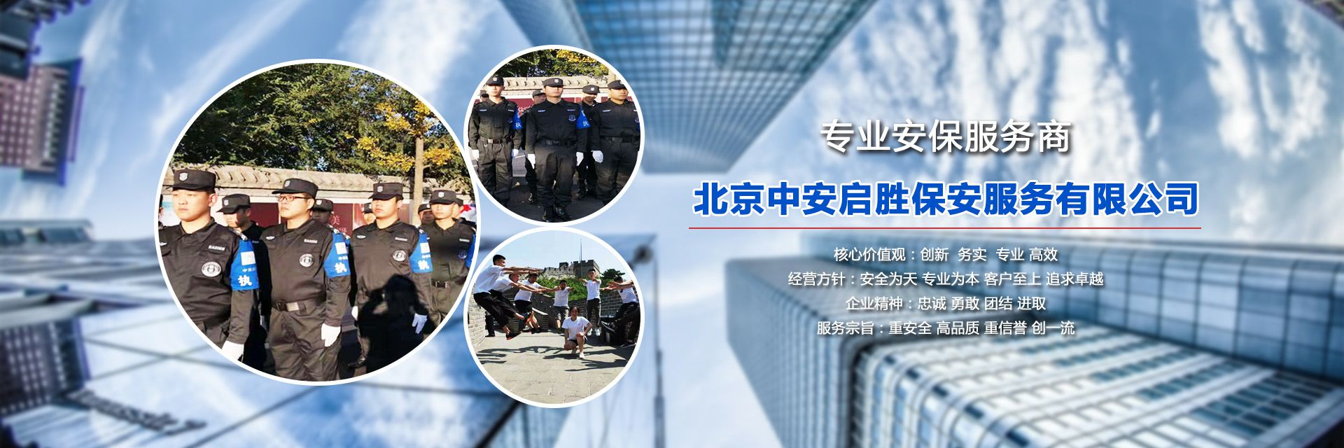公司自成立以来一直本着“创新发展、务实进取、专业为本、高效执行”的核心价值观。以一流的管理水平、一流的服务质量、一流的工作业绩为社会各界提供高质、安全、专业的安全防范的服务。严格遵守《保安服务管理条例》、《安全防范工程程序与要求》、《安全防范系统验收规则》等法律法规,建立了规范的经营管理题制和适应市场需求的安保服务模式。努力为社会提供全方位、多元化的安保服务。